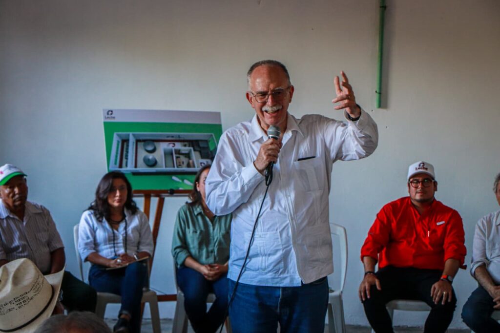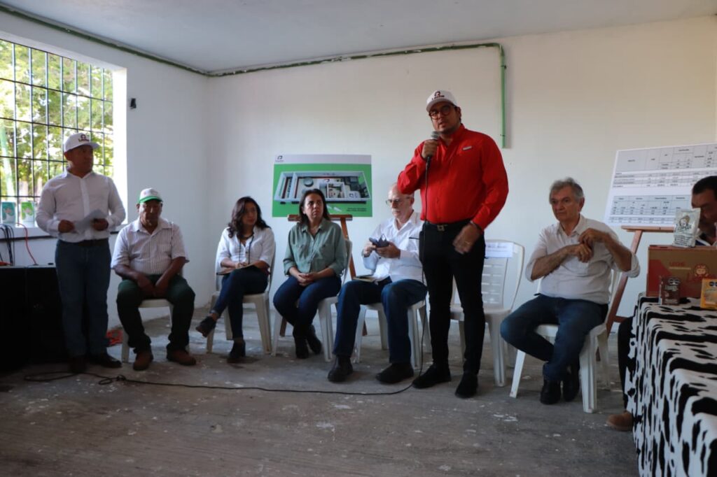 En el encuentro se presentó el proyecto de un nuevo núcleo lechero de Leche del Bienestar, cuyo objetivo es almacenar hasta 6 mil litros diarios y alcanzar una producción de un millón de litros al año.